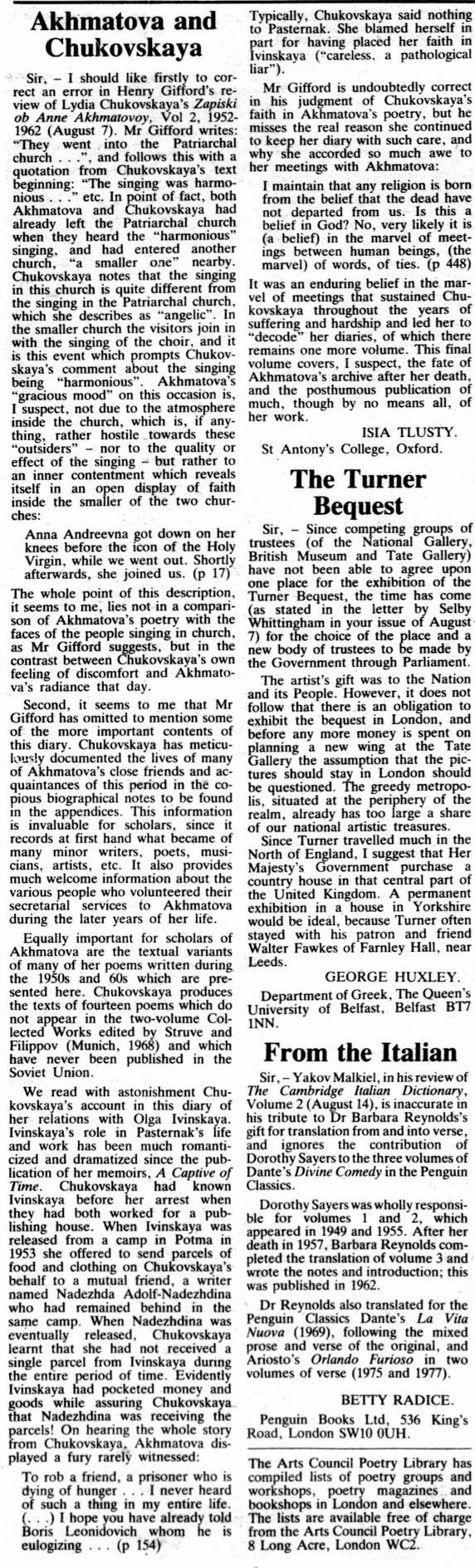 - Notes on Anna Akhmatova, Vol, 2, 1952-1962 Mentioned